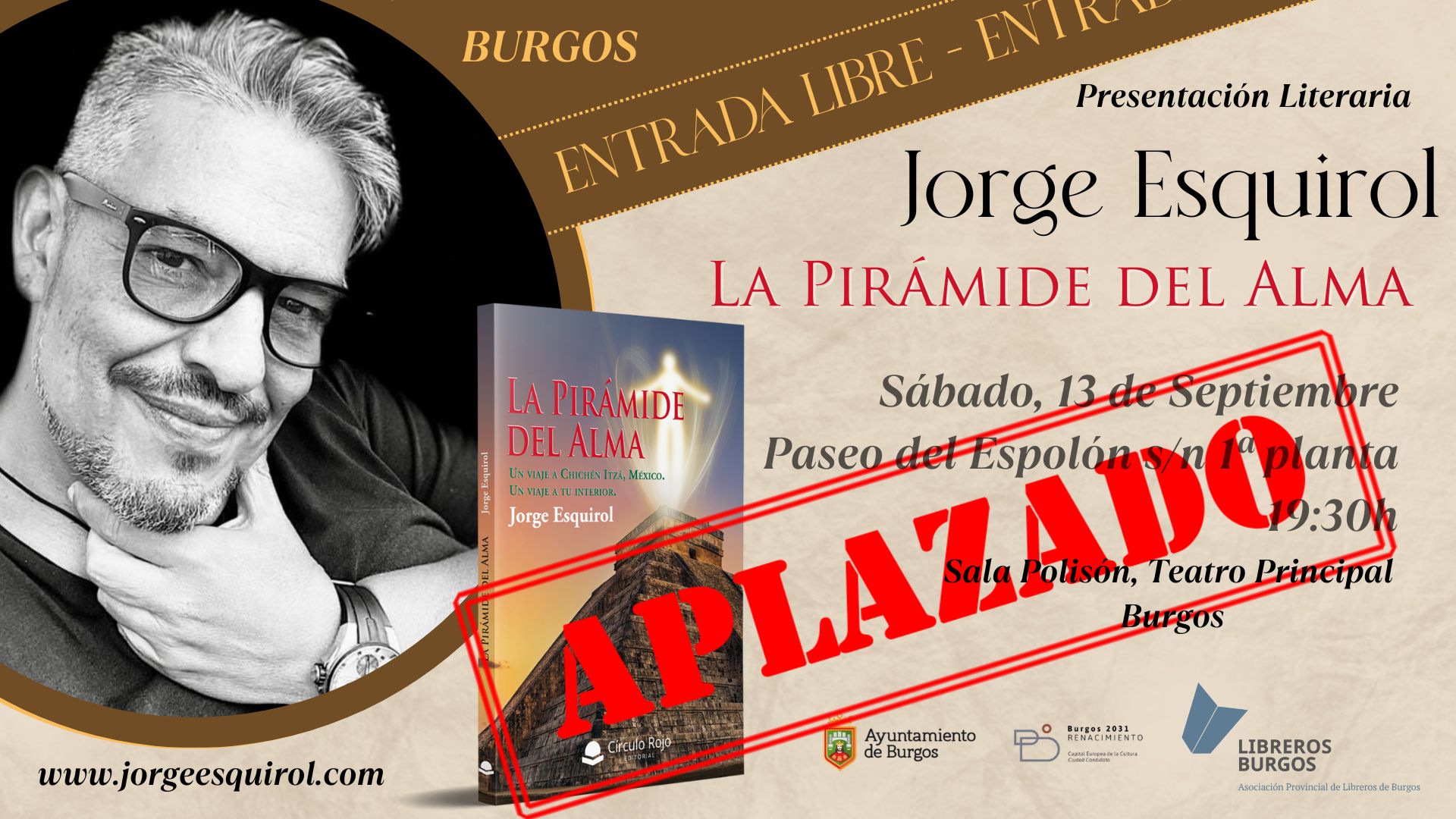 El próximo sábado 13 de septiembre a las 19:30 horas, el escritor Jorge Esquirol presentará su nuevo libro titulado La Pirámide del Alma en la Sala Polisón del Teatro Principal, ubicada en Paseo del Espolón s/n, 1.ª planta, Burgos.